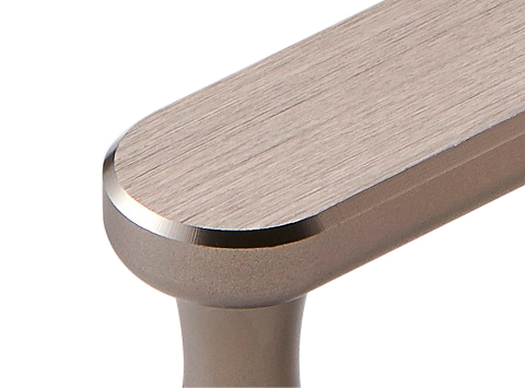 使用研磨材料於工具表面移動,以不同的施力點讓鋁件產生不一樣的絲向及紋路等效果,使鋁件表面產生